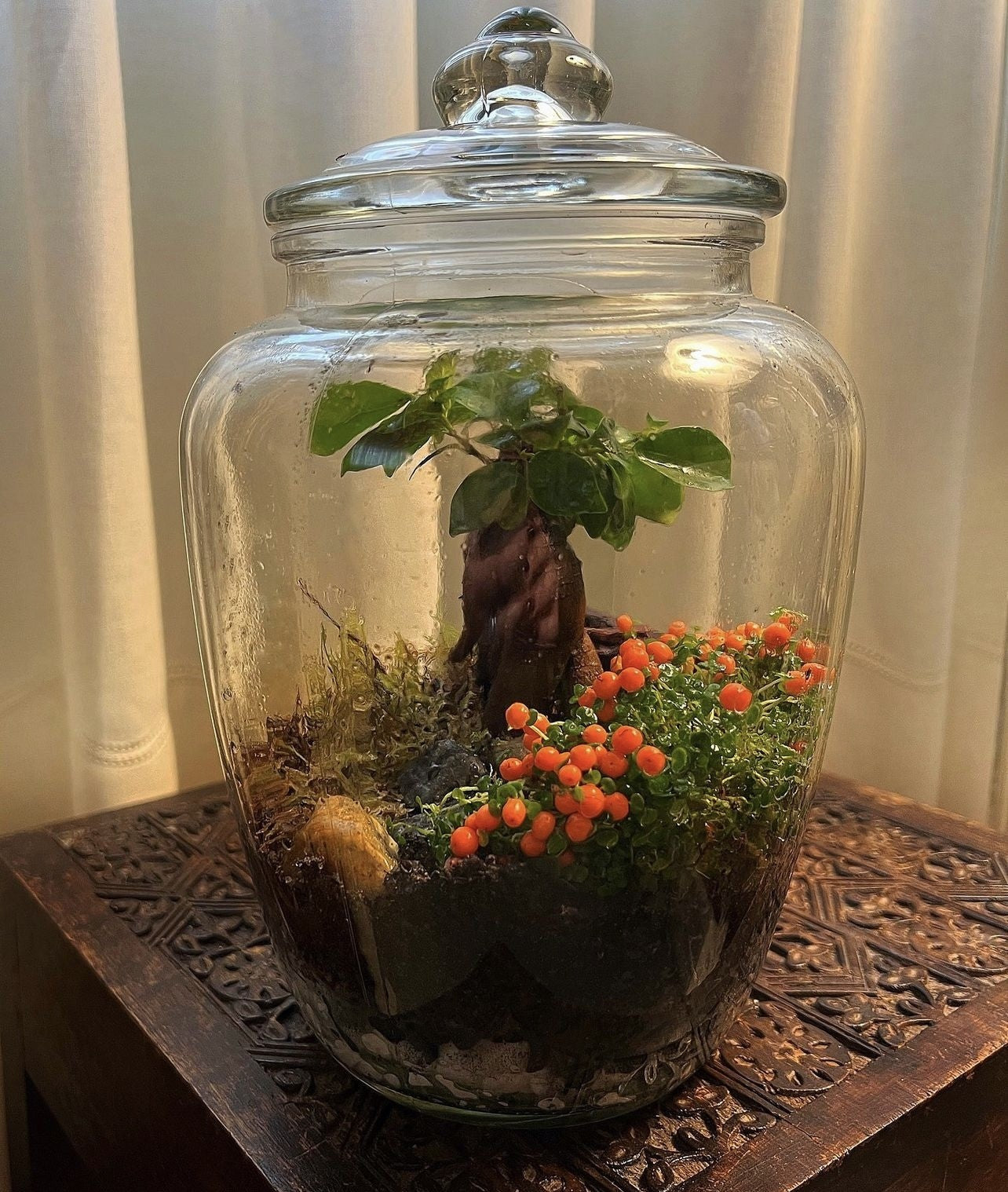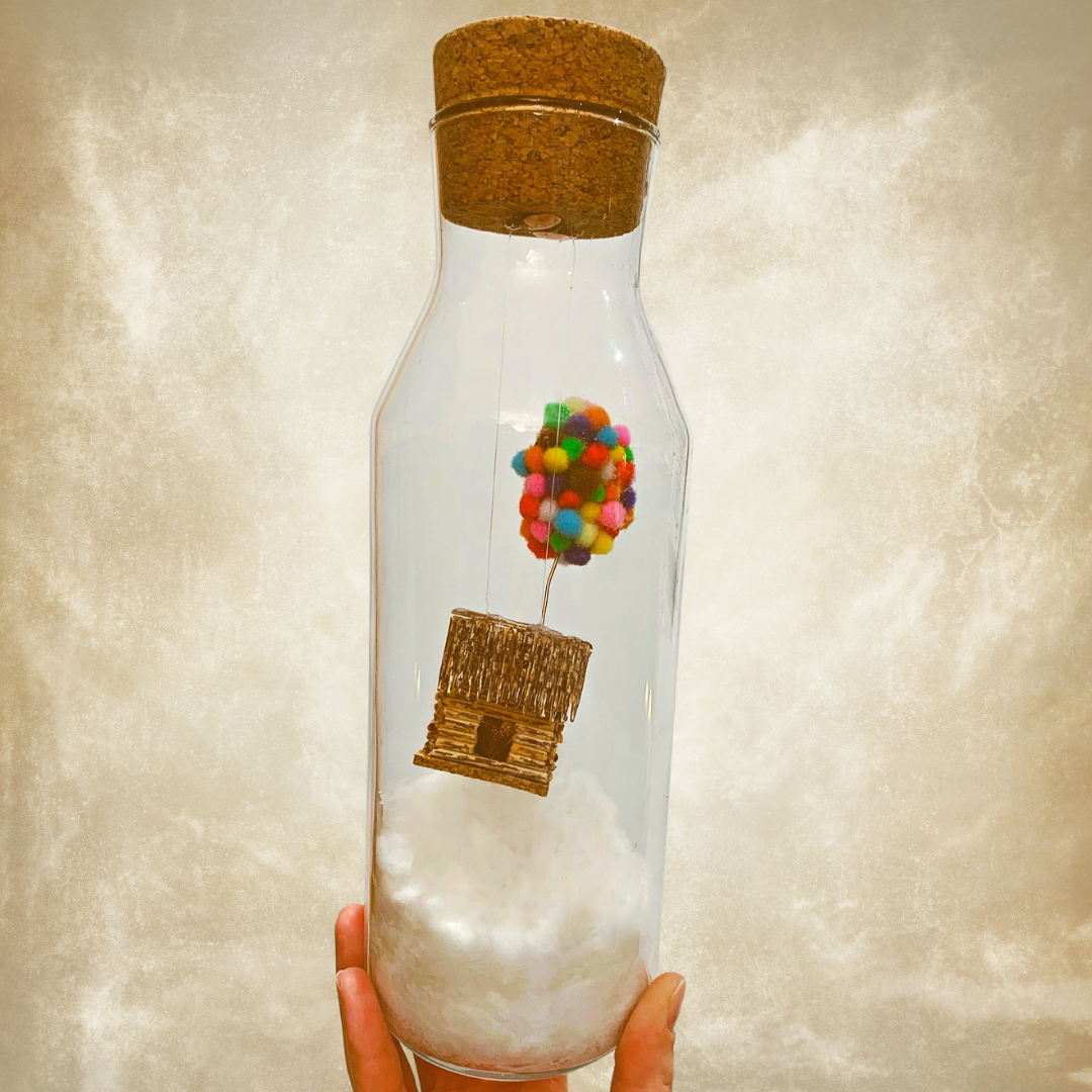 Pequeños mundos, escenarios y objetos recogidos en botellas pequeñas, medianas y grandes