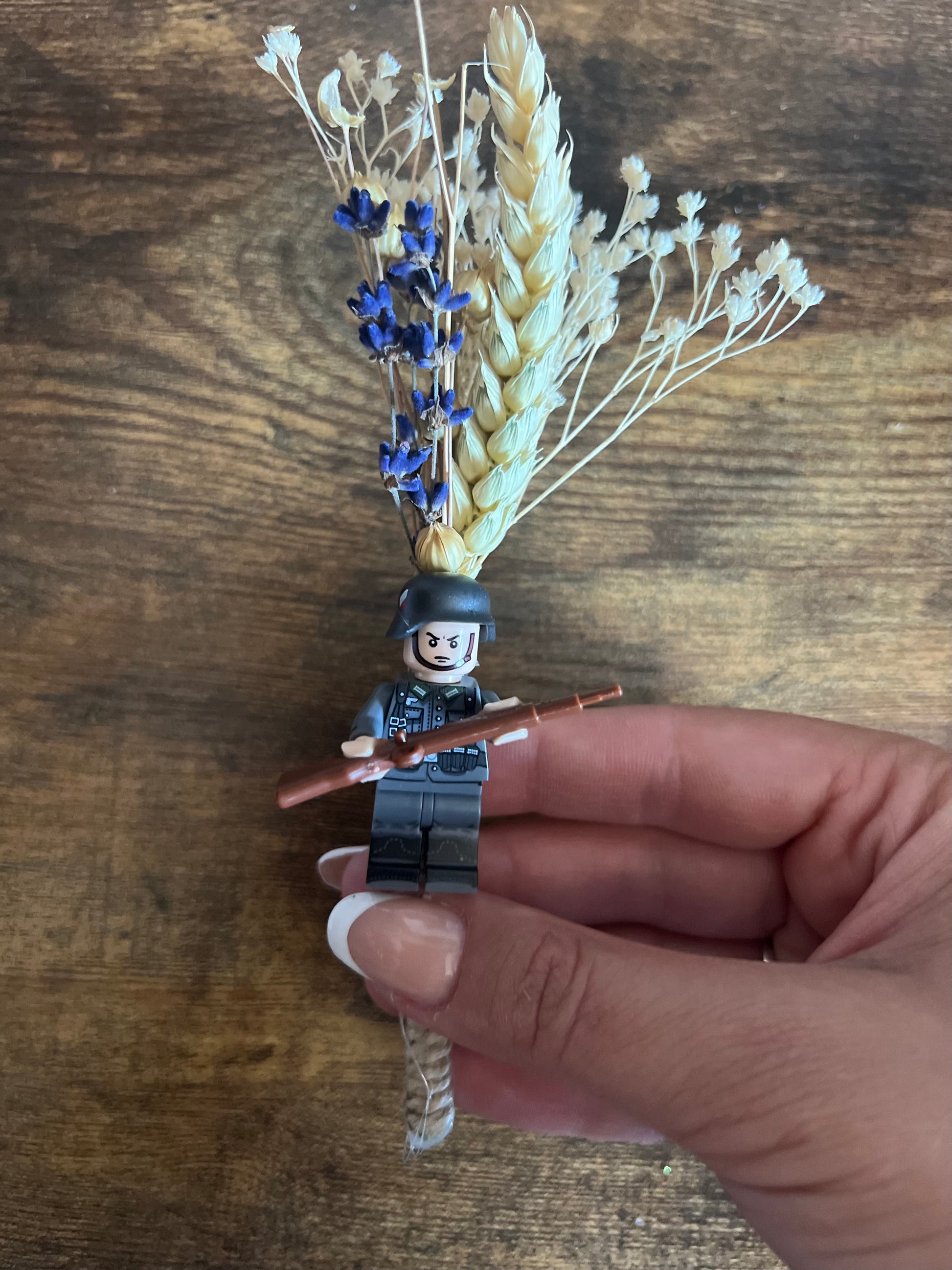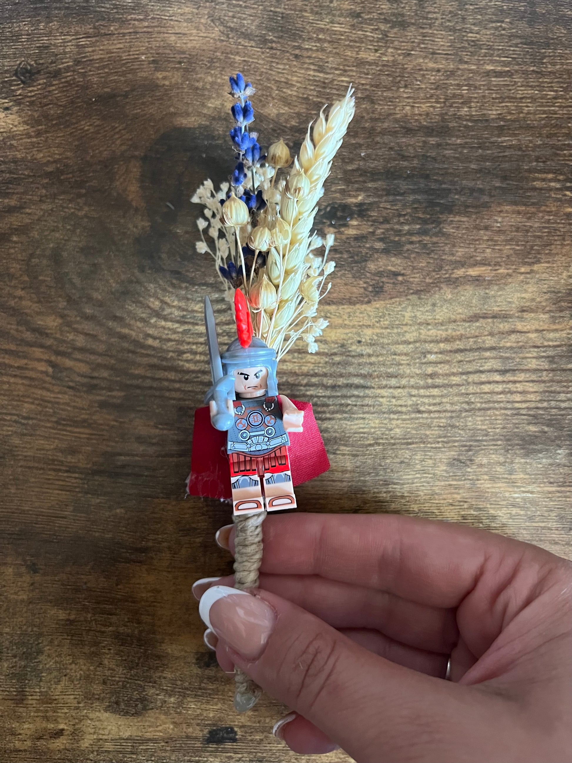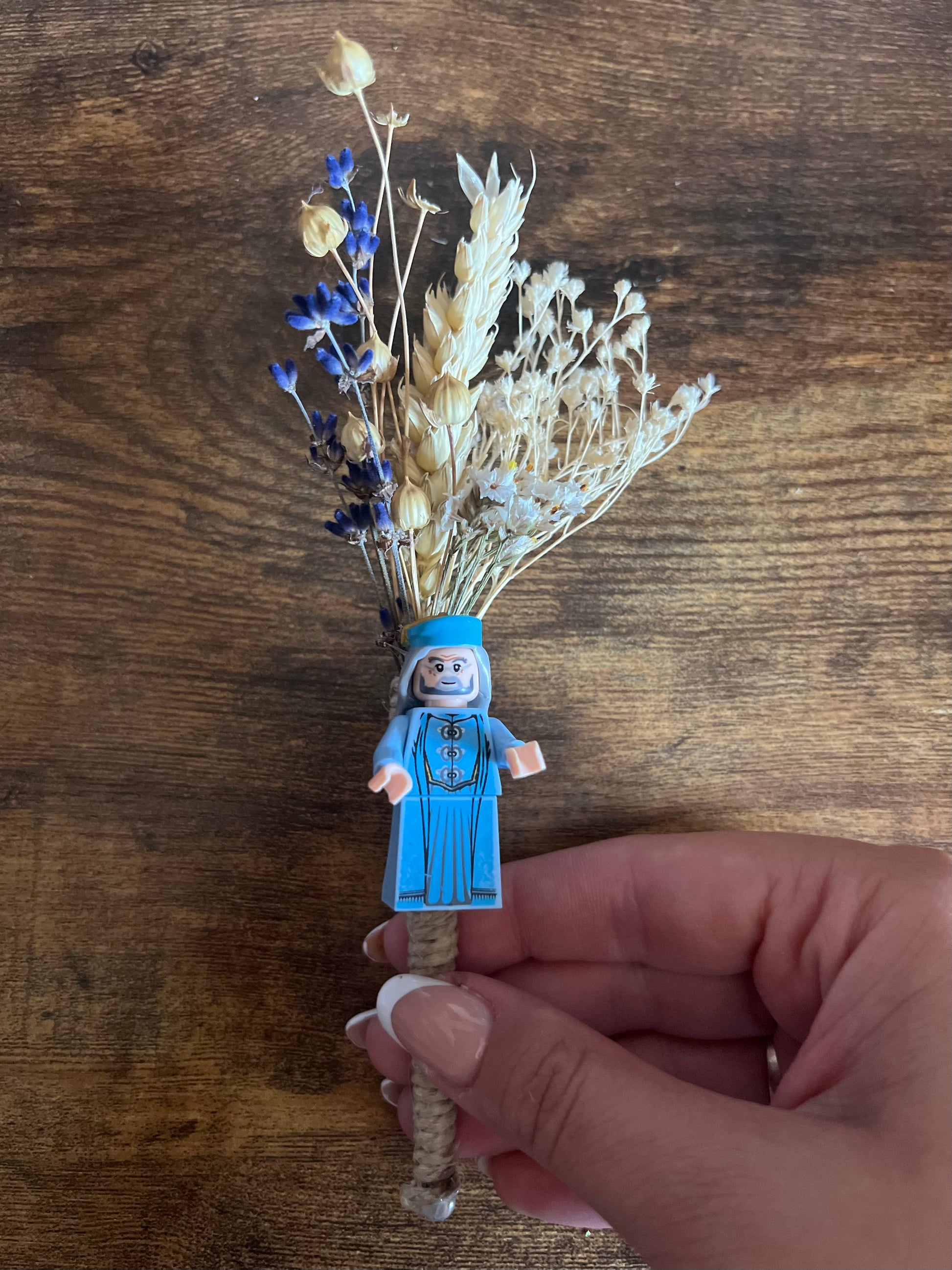 Alfileres de boda para el novio, padrino y las personas más importantes de la celebración. Se hacen por encargo de forma totalmente artesanal, con el personaje que quieras (consultar) y con flores secas.